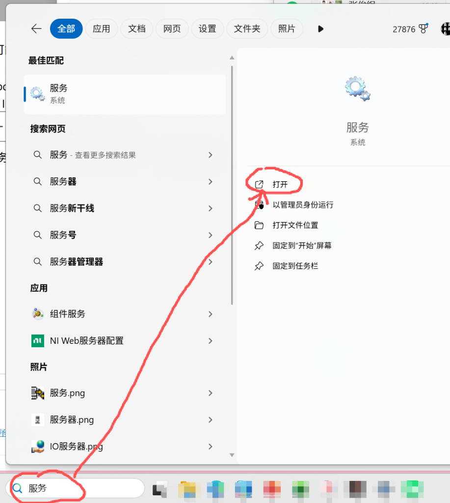 在下边栏搜索“服务”,打开后,找到这三个项目,然后启用它们: